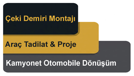 Firmamız; her marka ve model araca çeki demiri montajı, araç tadilat işlemleri ve kamyonet sınıfındaki araçların otomobile dönüşüm hizmetlerini profesyonel olarak gerçekleştirmektedir.